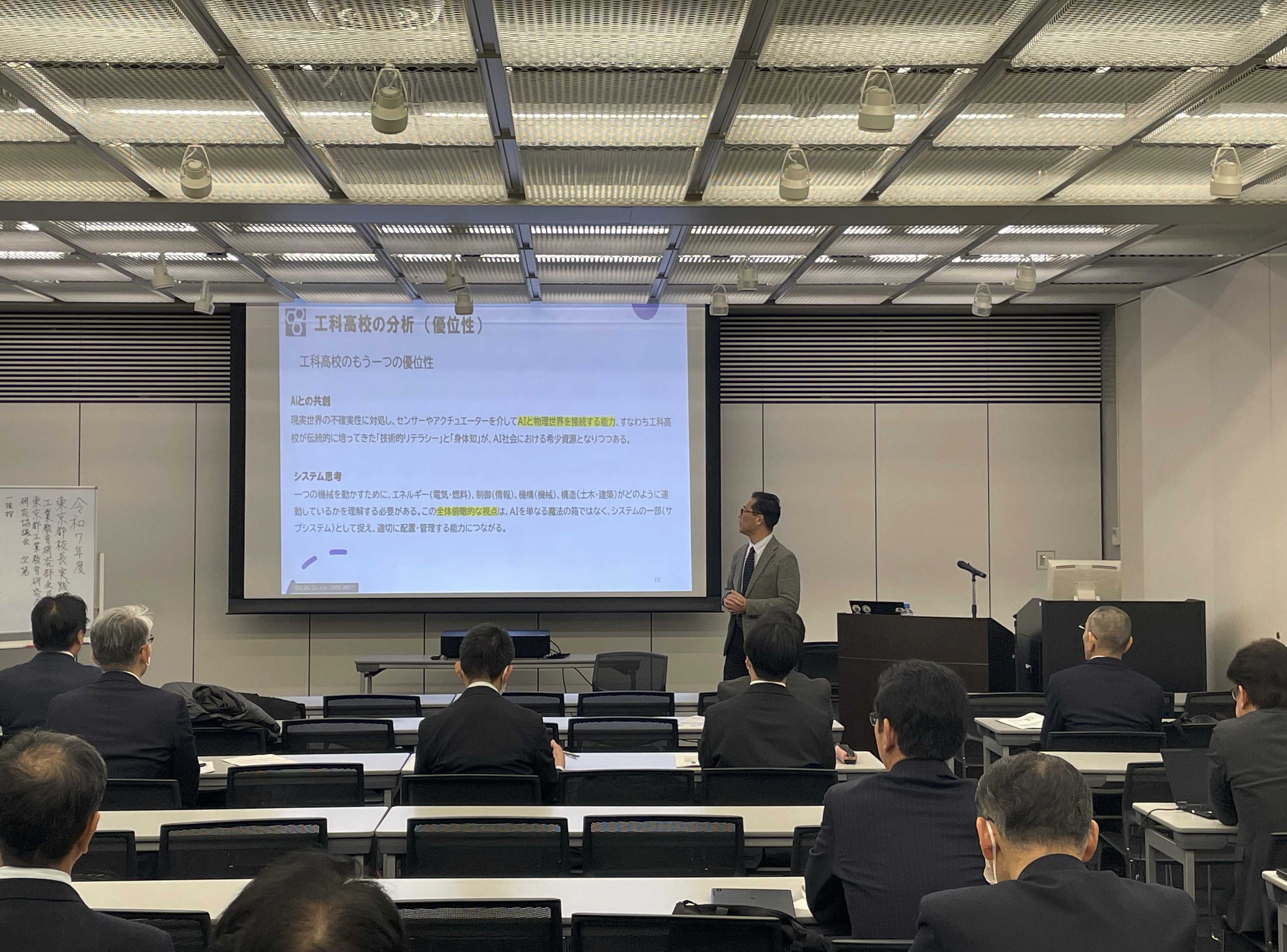 株式会社イクシルは、東京都教育委員会のご依頼により、2025年12月16日(火)に開催された「令和7年度 東京都立高等学校長実践研究会・工業教育部会並びに東京都工業教育研究会・研究協議会」において、東京都工業系高等学校の校長・副校長及び教員の先生方を対象とした講演を実施しました。